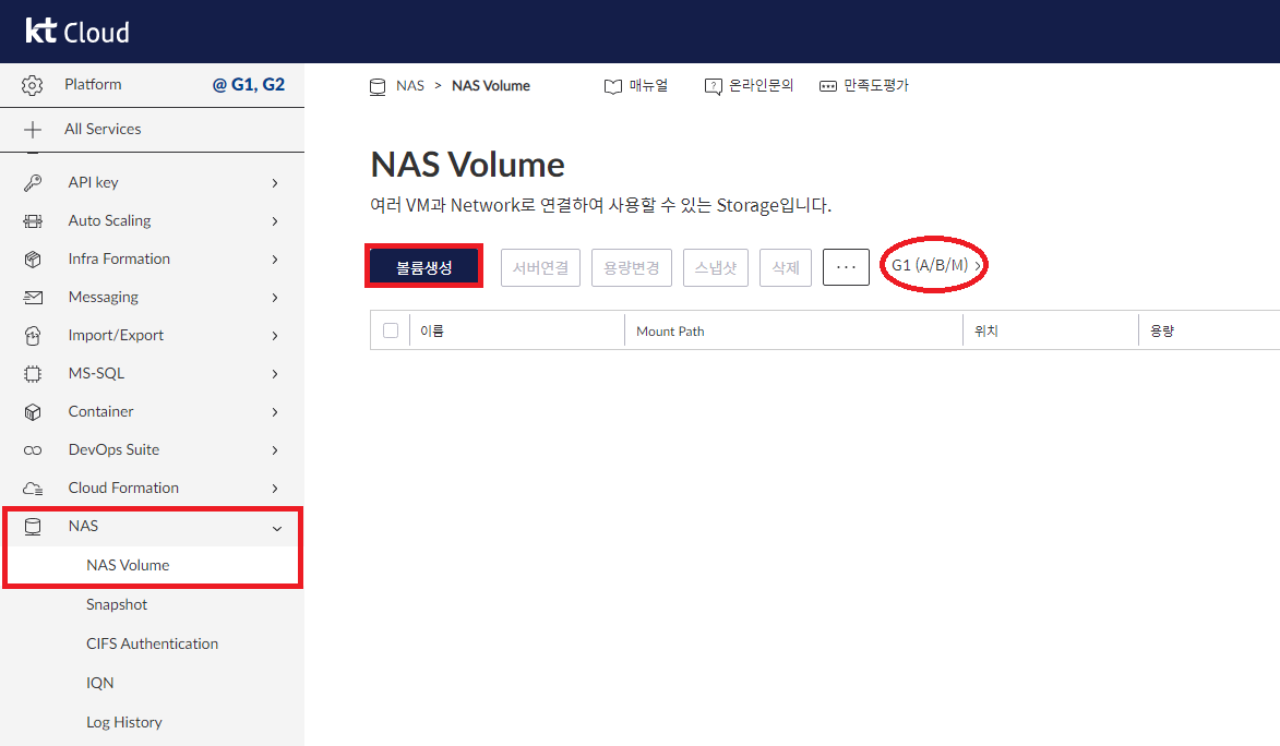 3. NAS -> NAS Volume -> 위치 선택 -> 볼륨 생성