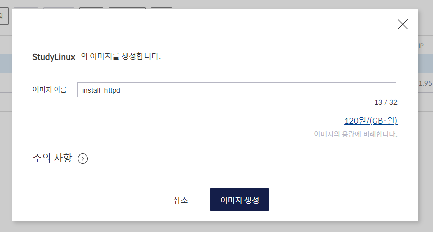 5. 이미지 이름을 작성한 후 이미지 생성을 눌러줍니다.