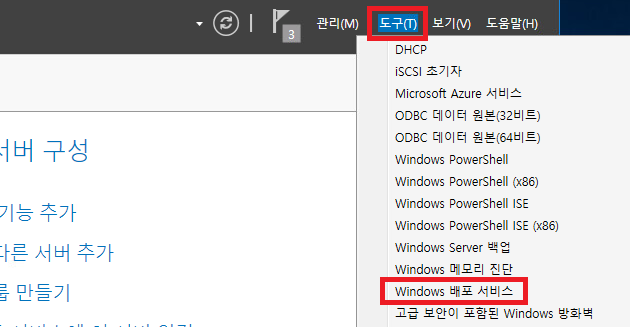 7. 설치 완료 후 도구 -> Windows 배포 서비스 클릭