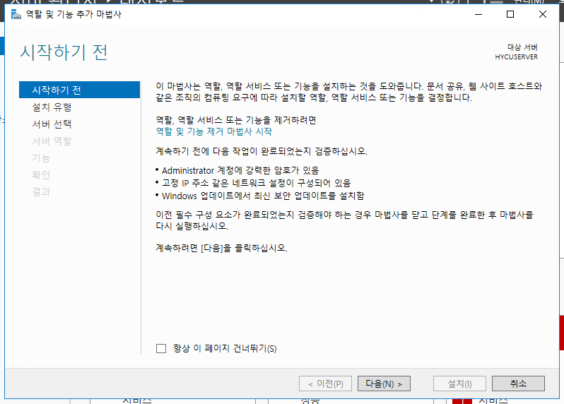 Windows server 2016에서 진행했습니다.