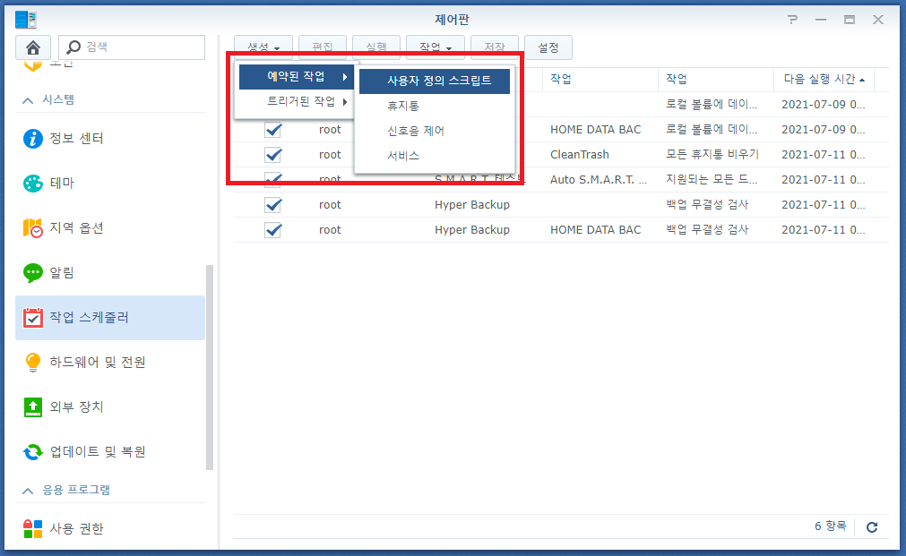 1. 여기서 생성 -> 예약된 작업 -> 사용자 정의 스크립트를 눌러줍니다.