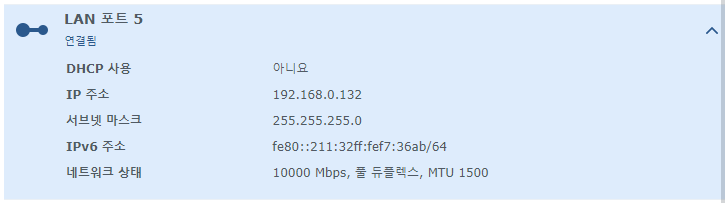 내부망 10G를 위해 10G 스위치와 10G 랜카드들을 구매했는데 시놀로지 NAS에만 적용하지 못해 결국