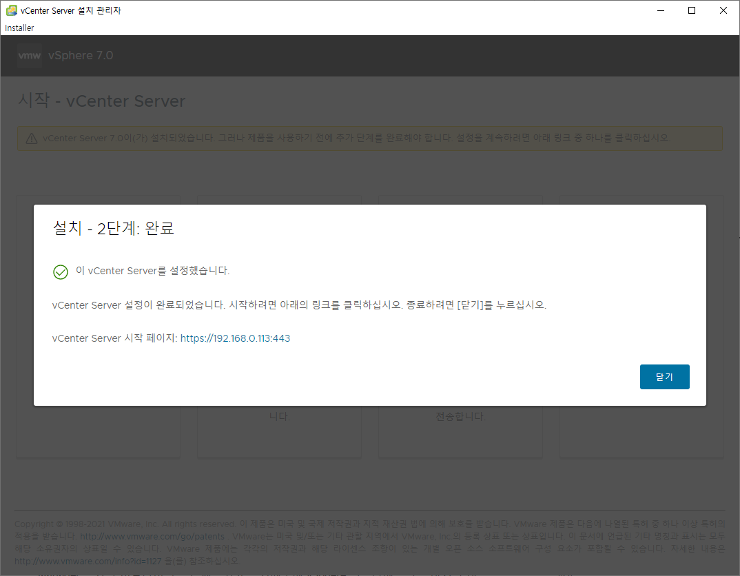 오늘은 이렇게 VCSA 설치 과정에 대해 작성해봤습니다.