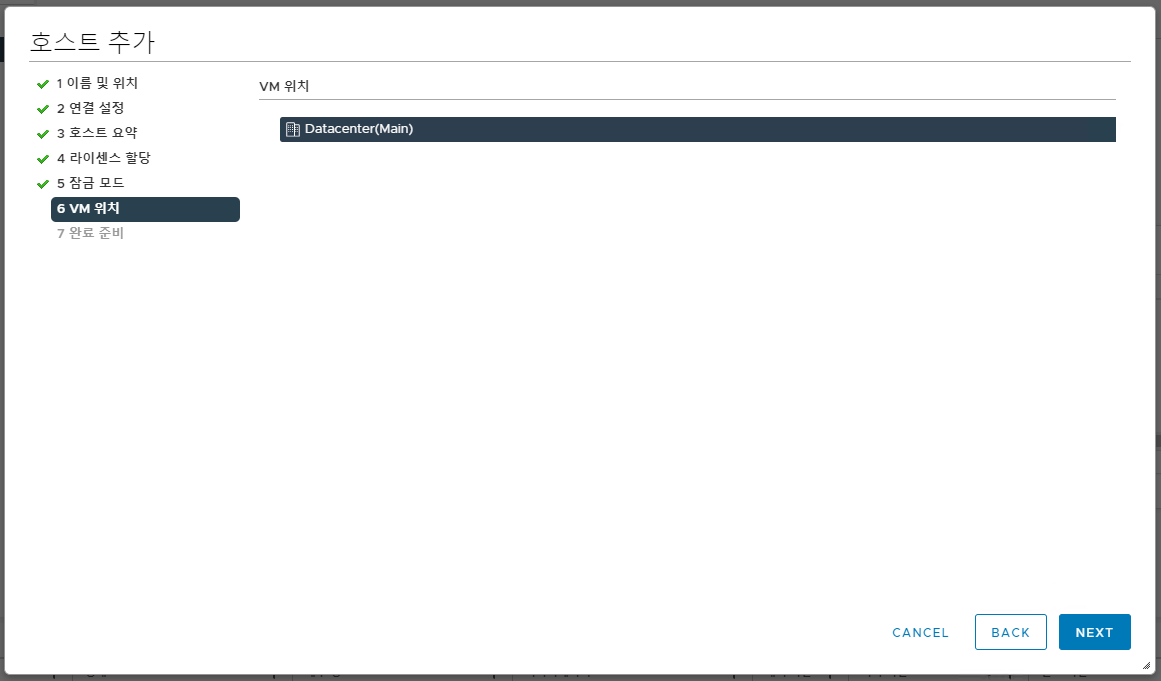 11. ESXi가 추가될 데이터센터를 선택해줍니다.