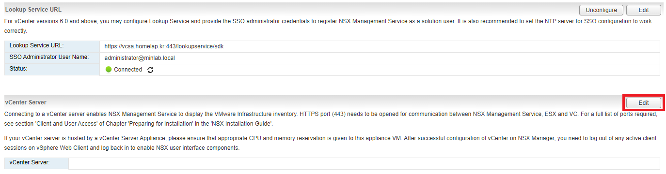 [VCSA] NSX 설치 #2 vCenter 연결하기