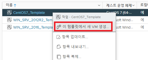 2. 템플릿 우클릭 후 이 템플릿에서 새 VM 생성을 클릭해주세요.