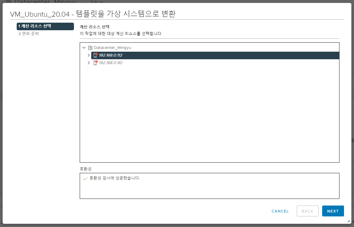 3. VM으로 변경하기 위해 VM이 돌아갈 호스트를 선택합니다.