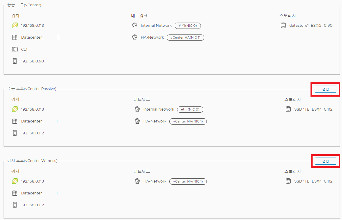 Passive-vCenter(수동) 설정과 마찬가지로 설정 방법은 같으니 진행 사진만 올려두도록 하겠습니다.