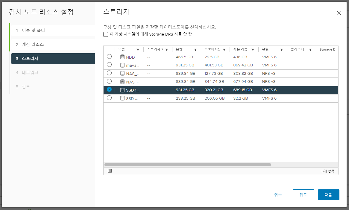 5. VM의 데이터가 저장되는 스토리지를 지정 후 넘어가 주세요.