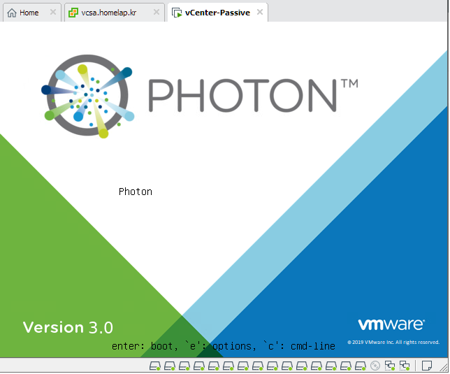 1. 먼저 VCSA 재부팅을 해주면서 위와 같은 화면이 나오면 e키를 눌러줍니다.