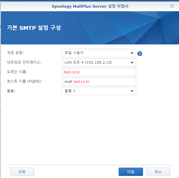 호스트 이름 (FQDN) : mail.test.co.kr