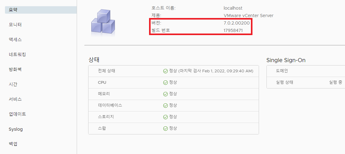2. 현재 저의 vCenter 버전은 7.0.2.00200으로 나와있습니다.