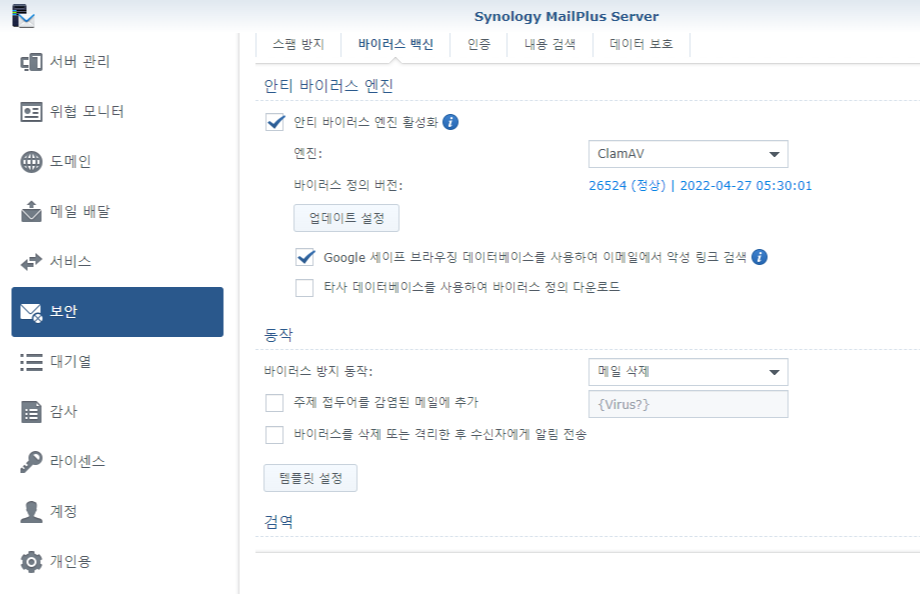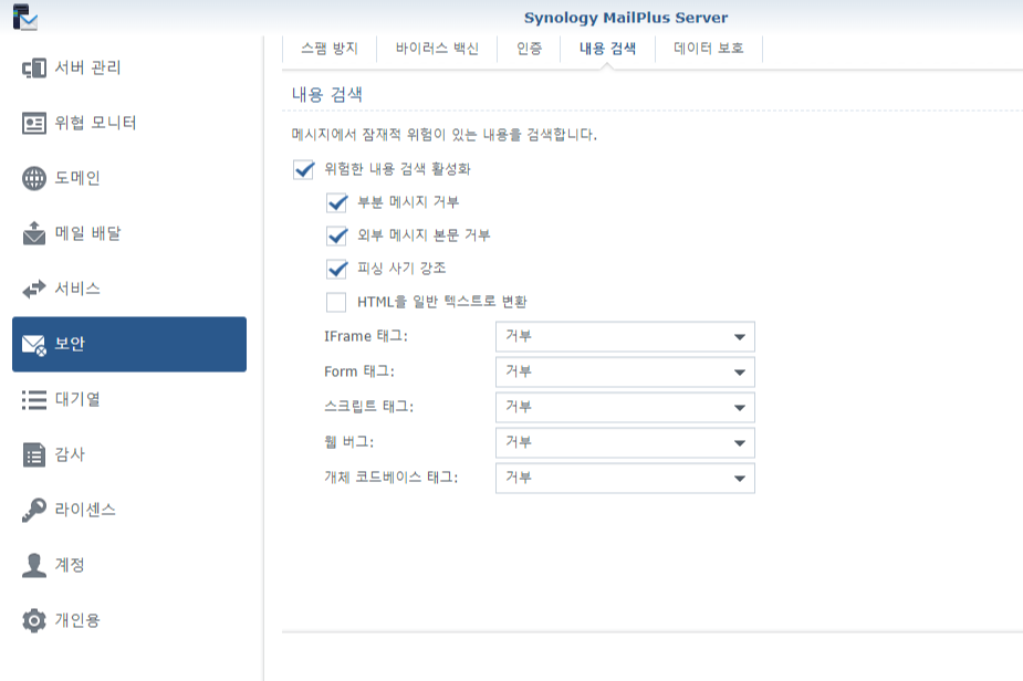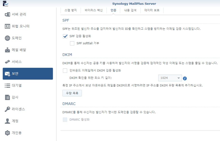 오늘은 메일 서버를 안전하게 사용하기 위해 추가 보안 설정을 해보도록 하겠습니다.