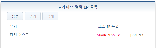7. Slave 영역 IP 목록에 들어가서 생성 및 백업 NAS(Slave) IP/Port를 입력합니다.