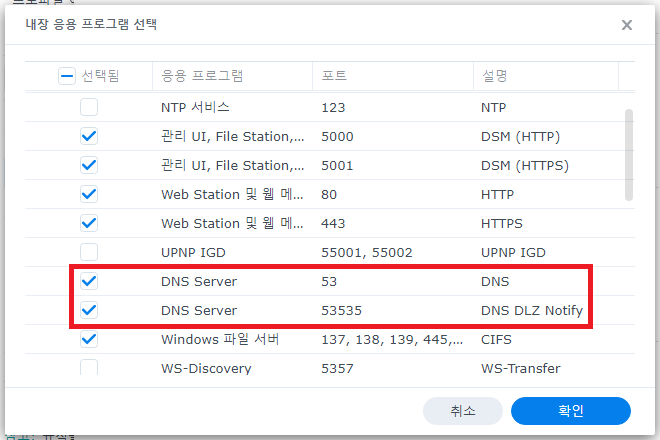 2. 패키지 설치가 완료되면 방화벽에서 53, 53535 포트를 활성화합니다.