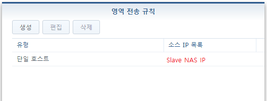 6. 영역 전송 규칙에 들어가서 생성 및 백업 NAS(Slave) IP를 입력합니다.
