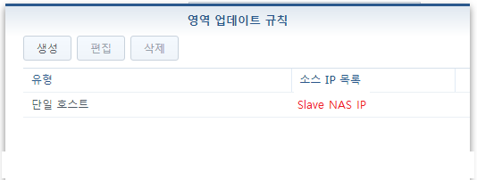 8. 영역 업데이트 규칙에 들어가서 생성 및 백업 NAS(Slave) IP를 입력합니다.