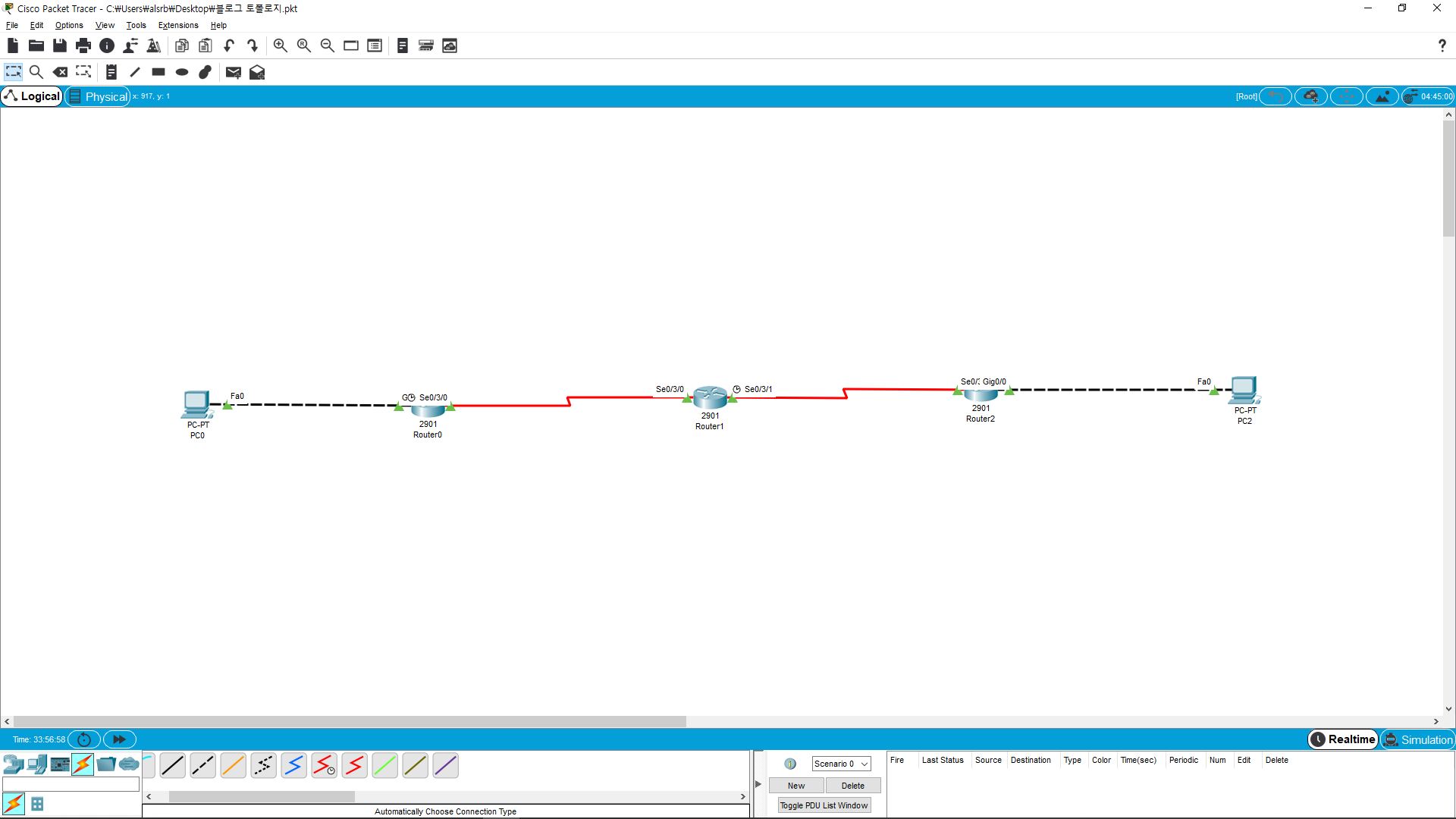 PC0과 Router1, Router1과 PC1끼리는 통신이 잘되고 Area영역이 다른곳은 서로 통신이 안되는 걸 볼수있다.