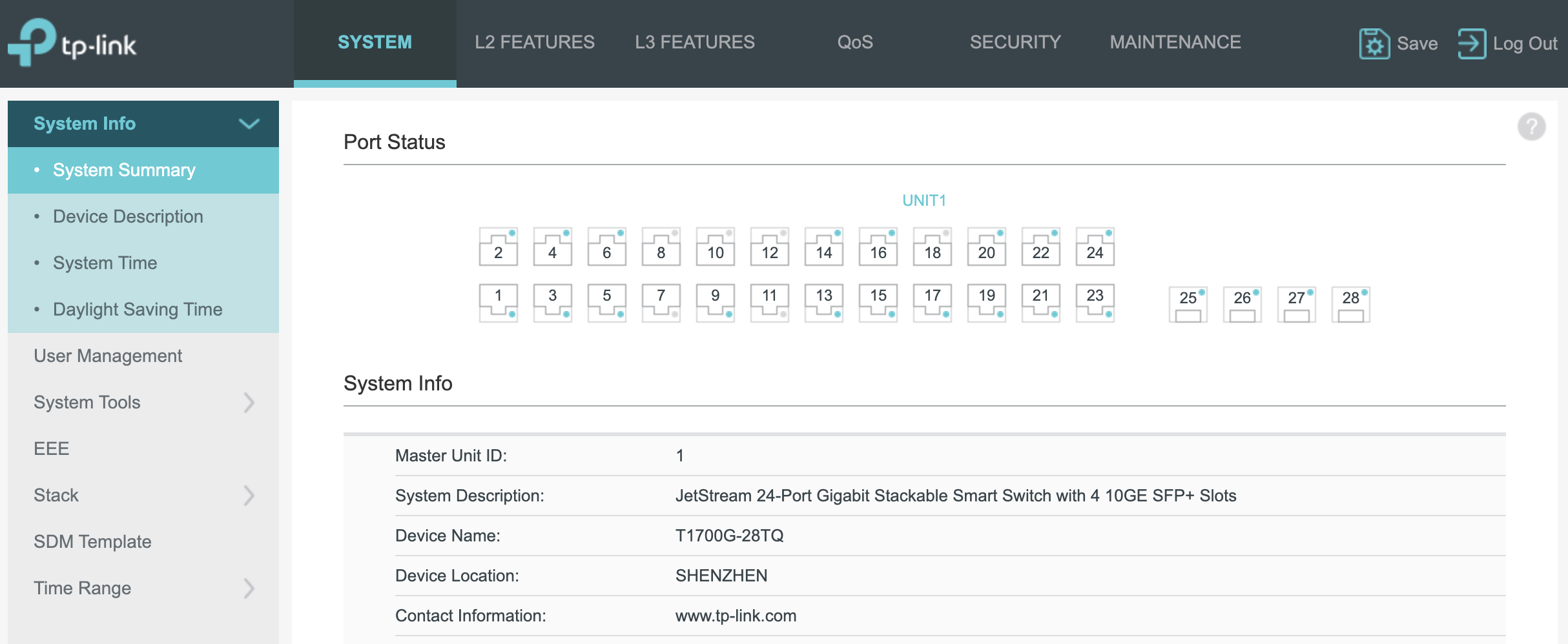 먼저 제가 사용하는 스위치의 모델은 TP-Link T1700G-28TQ 모델입니다.