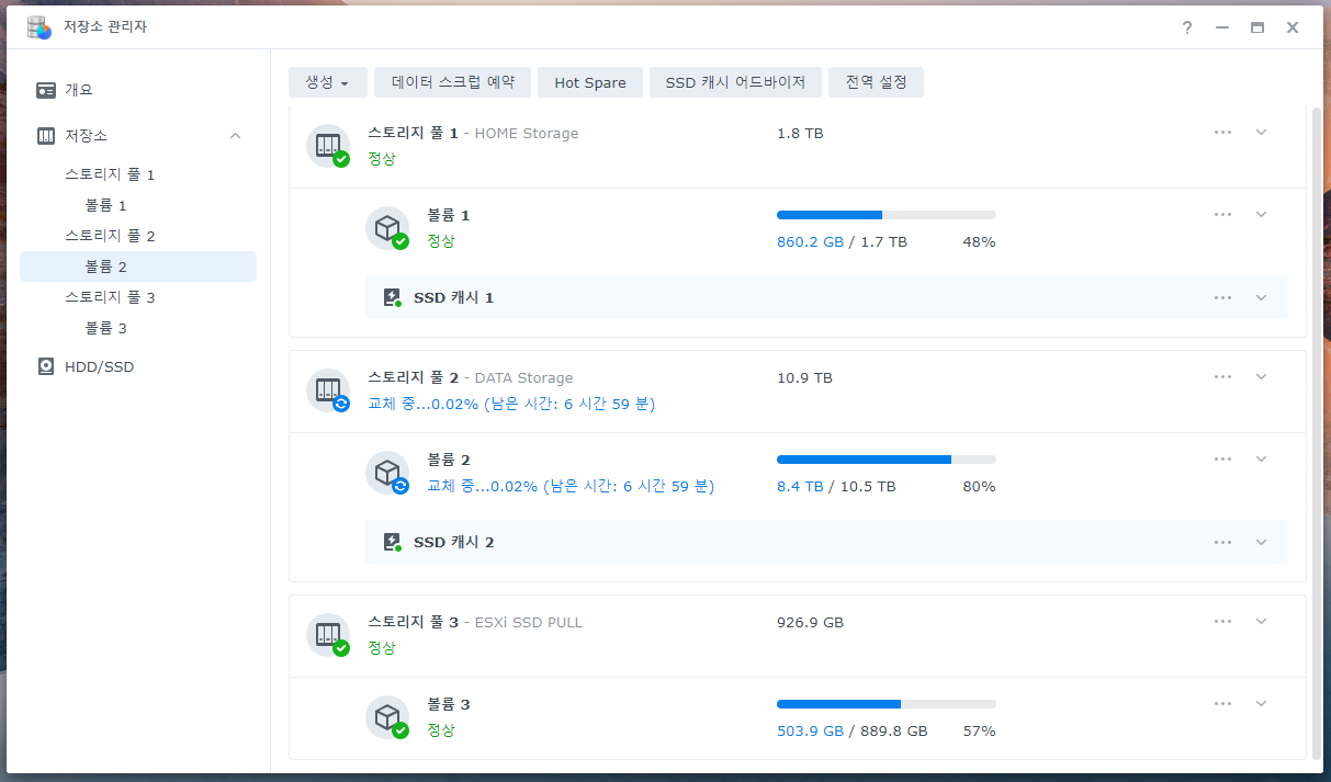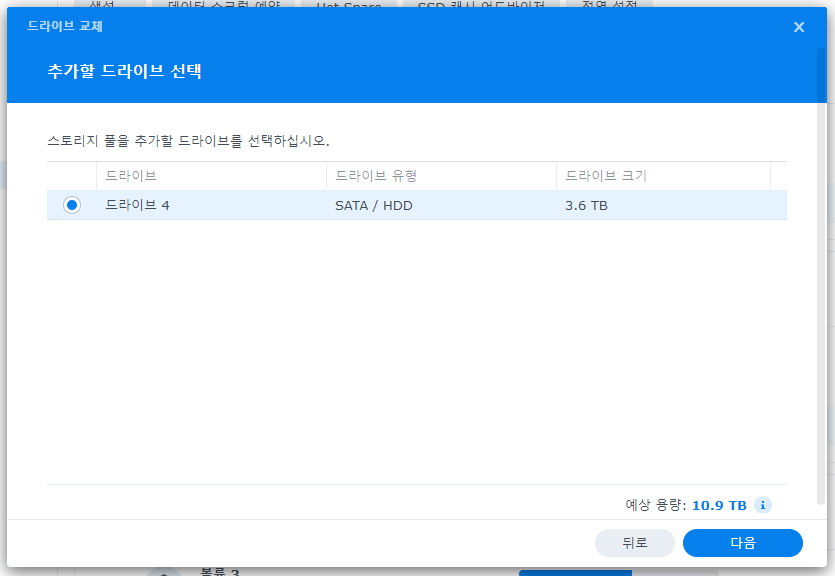 오늘은 Synology에서 드라이브 교체 기능을 사용해보려고 합니다.